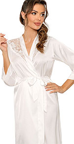 Rękawy proste do łokci, zapewnią komfort. Szlafrok wiązany w pasie satynowym sznurkiem.