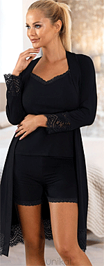 Najlepiej prezentuje się komplecie ze szlafrokiem.