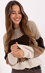 nazwa: Brązowo-ciemnobeżowy Sweter |