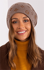 Zimowa czapka ze ściągaczem ozdobionym dżetami.