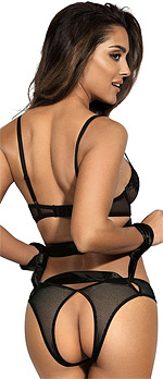 Transparentne stringi Primrose V-5178 uszyte z subtelnie zdobionego tiulu urzekają swoją delikatnością i wspaniale wyglądają z równie zmysłowym pasem do pończoch Primrose V-5172. |