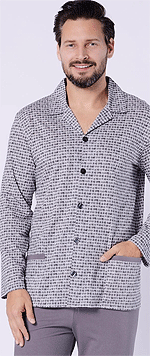 Słodziutka, szara piżama Monica SAL-PY-1168 z motywem uroczego pieska na koszulce. Czym się wyróżnia? Idealnie łączy w sobie luz, wygodę i niesamowitą kobiecość. Na koszulce napis "Kiss me I'm French". Spodenki krótkie, wzorzyste, na gumce. Wysoka jakość. Skład: 60% bawełna, 40% wiskoza.