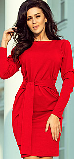 Sukienka z szerokim paskiem - można go wiązać zarówno z przodu jak i z tyłu. Przyjemny w dotyku materiał w kolorze czerwonym. Marka numoco. Produkcja polska. |