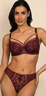 Wysoki mostek dodatkowo wspiera konstrukcję, a koronkowe miseczki w roślinny wzór dodają subtelnej kobiecości. Boczki i tył wykonane są z elastycznej, lekko prześwitującej siateczki, która dopasowuje się do sylwetki. Regulowane paseczki na dekolcie, nieodpinane ramiączka oraz trójstopniowe zapięcie na dwie lub trzy haftki (w zależności od rozmiaru) gwarantują wygodę i indywidualne dopasowanie. |