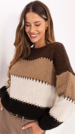 nazwa: Brązowo-ciemnobeżowy Sweter |
