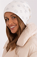 Zimowa czapka z aplikacją wysadzaną diamencikami. skład materiału : 50% akryl , 30% bawełna , 20% kaszmir sposób prania : pranie ręczne w 30°C