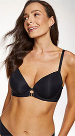 Klasyczny biustonosz push-up z bezszwowymi miseczkami naturalnie modeluje biust, zdecydowanie go unosząc i zbierając do środka. Bieliźnie uroku dodają złote ozdoby umieszczone między miseczkami.Biustonosz push-up z gładkimi miseczkami modelowanymi termicznie,