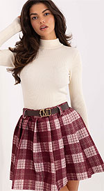 Bordowa plisowana spódnica mini w kratę to idealny wybór dla kobiet, które kochają modę i wygodę. Rozkloszowany krój i eleganckie plisy pięknie podkreślają nogi, a dołączony pasek z klamrą akcentuje talię.