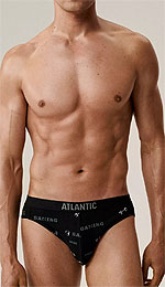 Szeroka, elastyczna guma z logo Atlantic pełniąca także funkcję boków slipów.